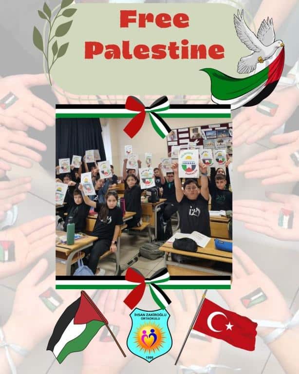 Filistin’de yaşanan insan hakları ihlallerine dikkat çekmek ve öğrencilerimizde barış, insan hakları ve demokratik sorumluluk bilincini güçlendirmek amacıyla okulumuzda farkındalık etkinlikleri düzenlendi.